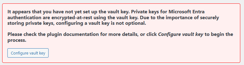 Click the Configure vault key button. A unique vault key will be generated, and you will be given instructions for how to install it.